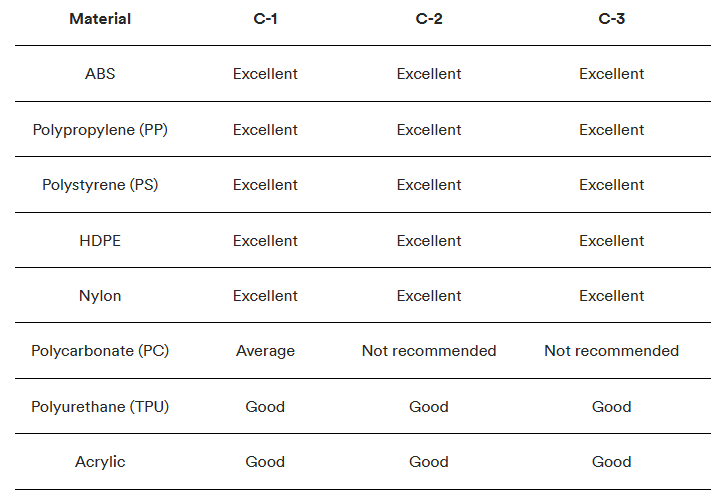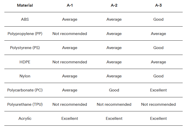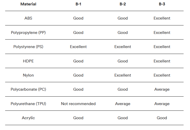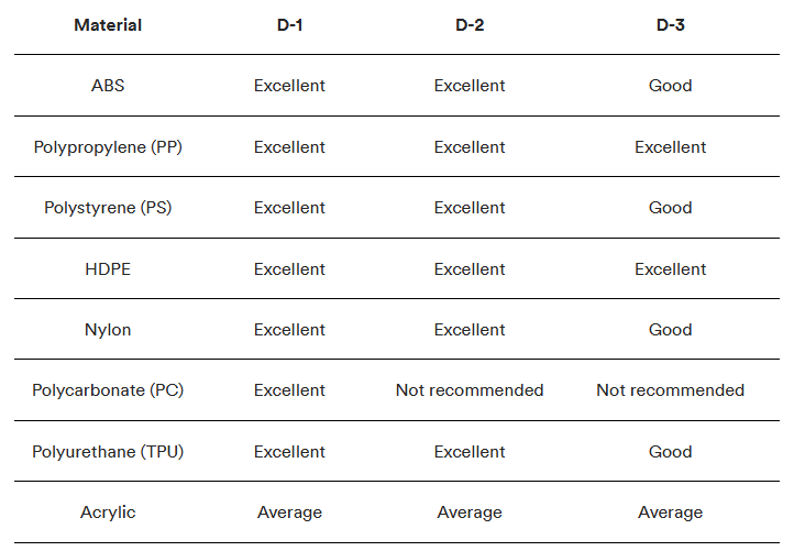 SPI surface/mold finishes produce different results depending on the material you use for injection molding components. The tables below detail how to select the right mold finish and materials for your specific application.