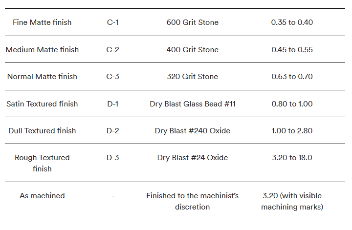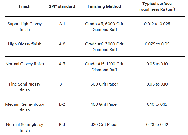 This table contains all of the SPI injection molding surface finishes we offer.